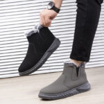Winter Snow Boots Men / V Cutout with Plush Ankle Boots